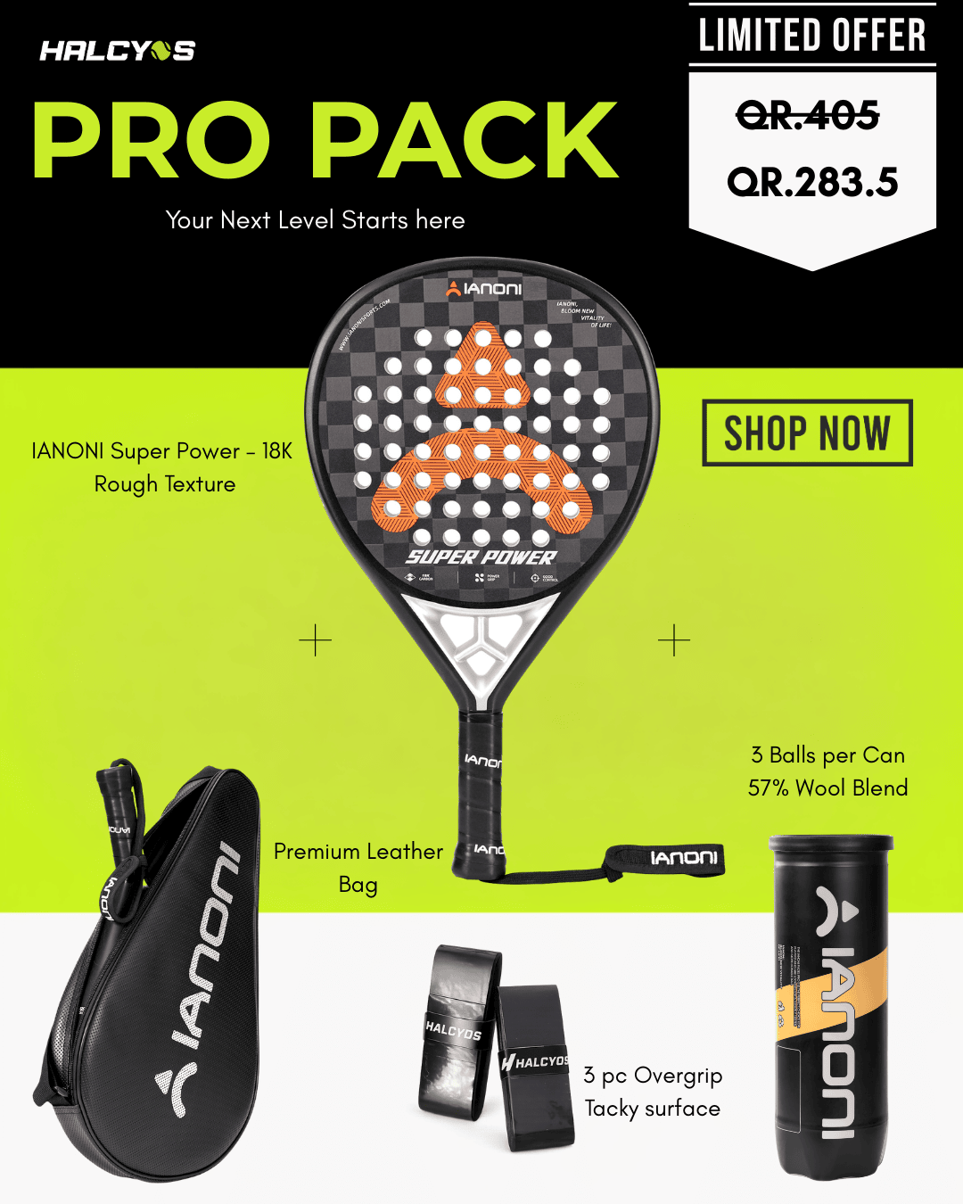 Padel rackets, padel balls, starter packs, pro rackets, Qatar padel equipment, Halcyos GO Doha.