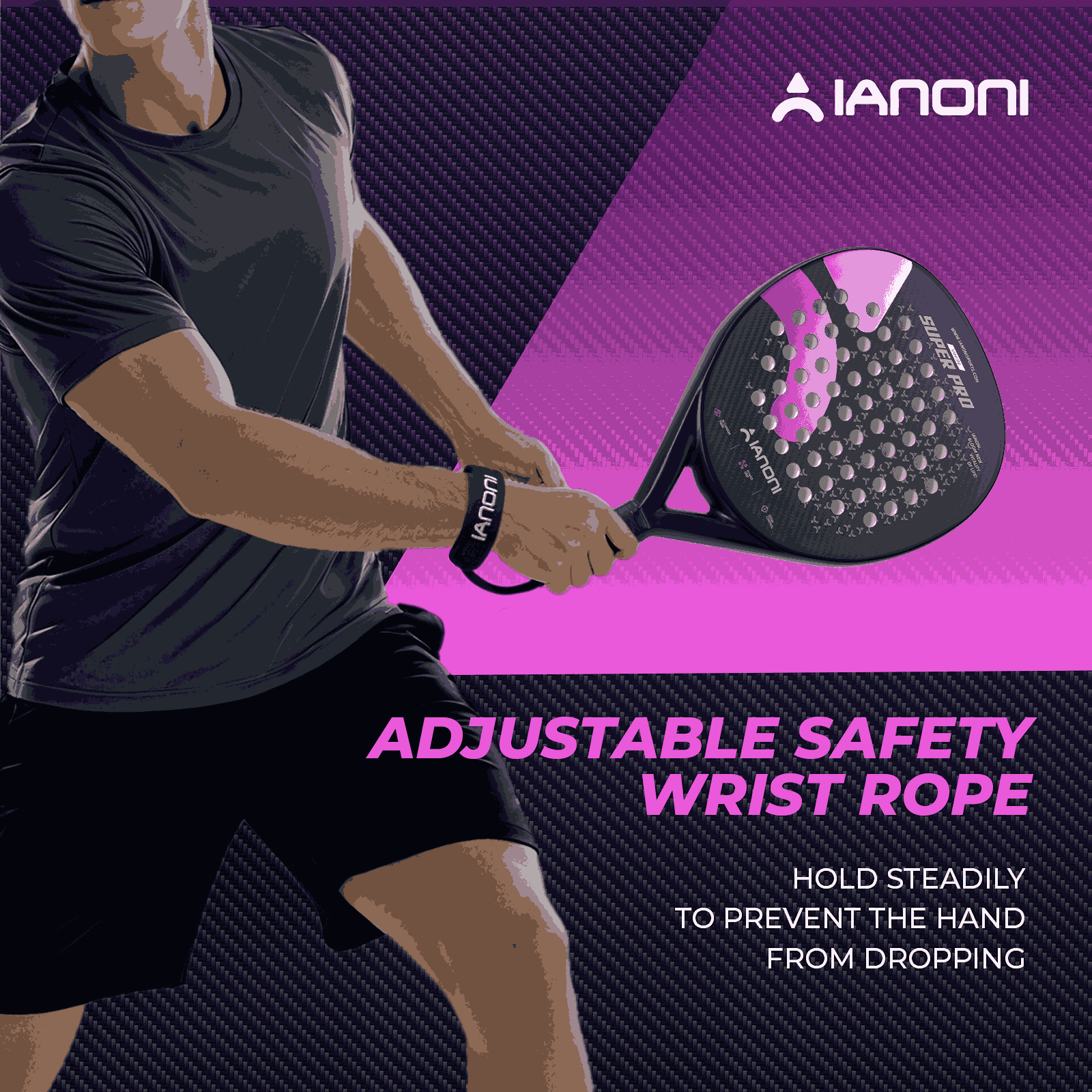 The IANONI Super Pro delivers speed, spin, and confidence in every rally. Its premium 3K carbon face ensures durability, while the EVA core absorbs shock for comfort and responsiveness.