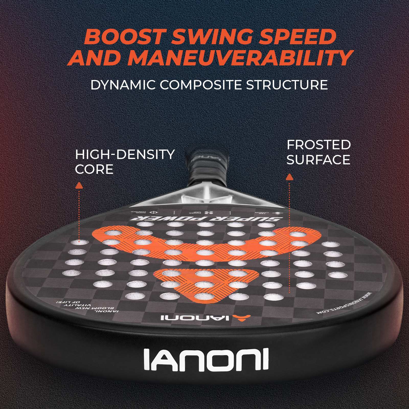 The IANONI Super Power Padel Racket is engineered for players who demand performance and precision. Crafted from 18K carbon fiber with a rough textured surface, it delivers enhanced spin and powerful shots without compromising control.
